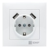 Электрическая розетка немецкого стандарта с защитными шторками, скрытой установки, для сухих помещений, белого цвета, ЕКФ серия Валенсия. EWR16-028-10