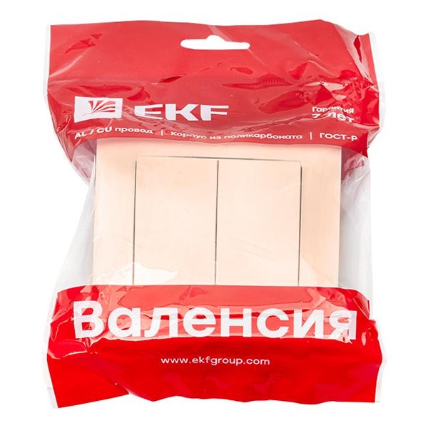 Двухклавишный выключатель скрытой установки, для сухих помещений, кремового цвета, ЕКФ серия Валенсия. EWV10-023-20
