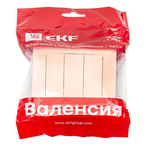 Трехклавишный выключатель скрытой установки, для сухих помещений, кремового цвета, ЕКФ серия Валенсия. EWV10-024-20