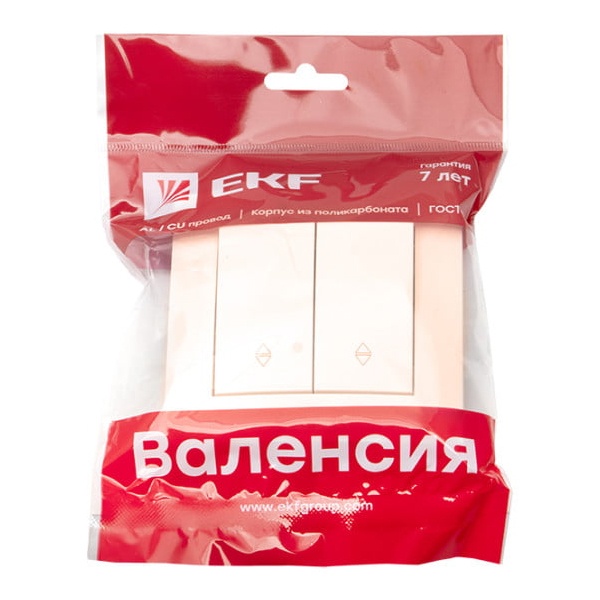 Проходной двухклавишный выключатель скрытой установки, для сухих помещений, кремового цвета, ЕКФ серия Валенсия. EWV10-027-20