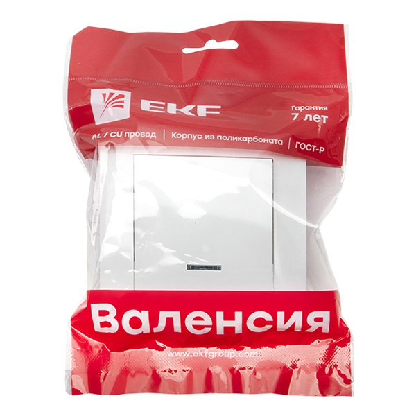Одноклавишный выключатель с лампой индикации, скрытой установки, для сухих помещений, белого цвета, ЕКФ серия Валенсия. EWV10-121-10