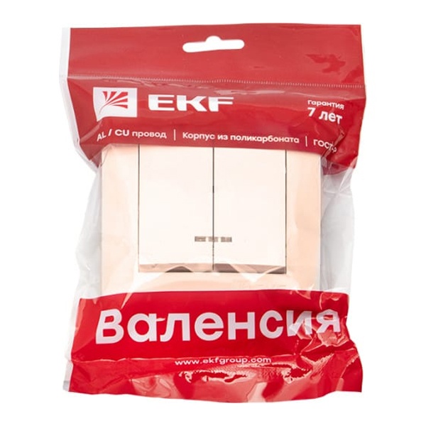 Двухклавишный выключатель с лампой индикации, скрытой установки, для сухих помещений, кремового цвета, ЕКФ серия Валенсия. EWV10-123-20