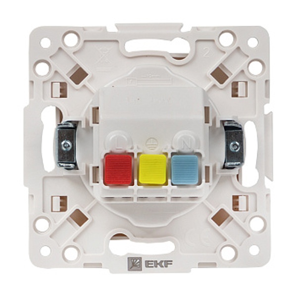 Электрическая розетка немецкого стандарта с защитой контактов и пружинным подключением для скрытой установки в сухих помещениях, белого цвета, ЕКФ серии Стокгольм. EXR16-028-10