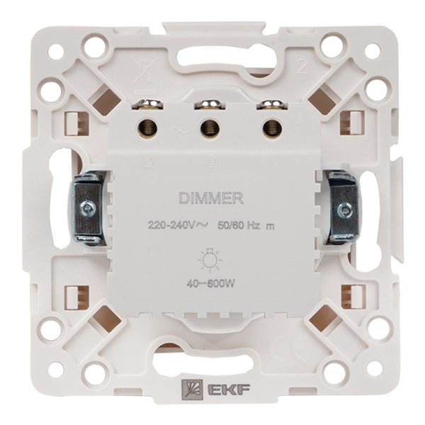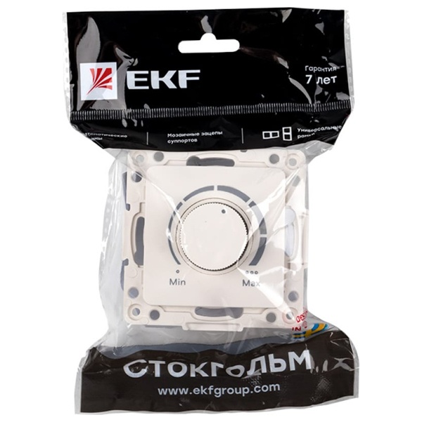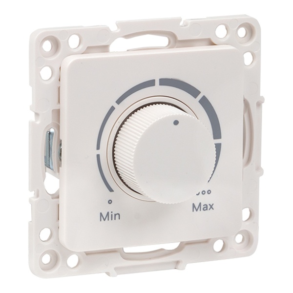 Механизм поворотного диммера мощность до 600 Вт для скрытой установки в сухих помещениях с накладкой белого цвета, ЕКФ серии Стокгольм. EYD06-101-10
