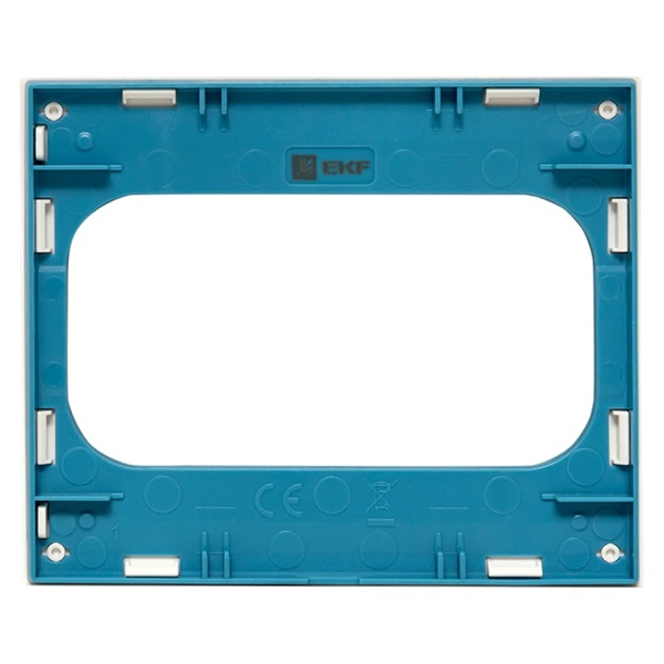Обрамление из пластика прямоугольной формы, для механизма двойной розетки скрытого монтажа ЕКФ, коллекция Стокгольм, белого цвета с синей полосой EYM-G-302-30