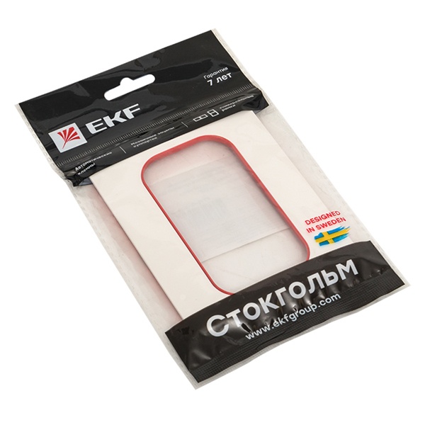 Обрамление из пластика прямоугольной формы, для механизма двойной розетки скрытого монтажа ЕКФ, коллекция Стокгольм, белого цвета с красной полосой EYM-G-304-20