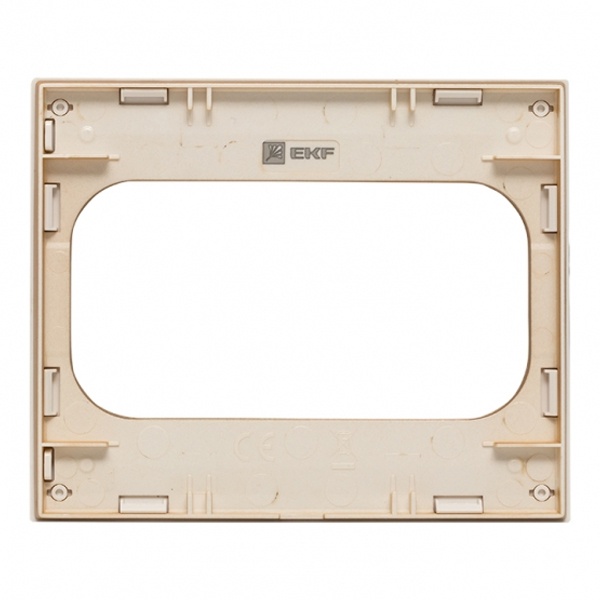 Обрамление из пластика прямоугольной формы, для механизма двойной розетки скрытого монтажа ЕКФ, коллекция Стокгольм, белого цвета с бежевой полосой EYM-G-305-20