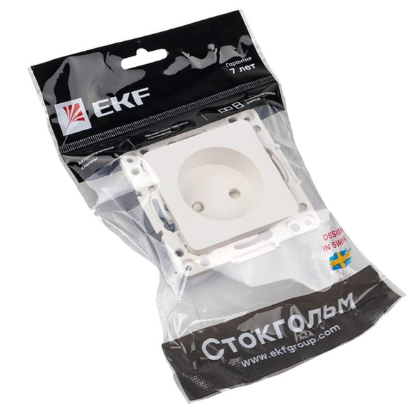 Розетка 1-м СП Стокгольм 10А IP20 без заземл. защ. шторки механизм бел. PROxima EKF EYR10-022-10