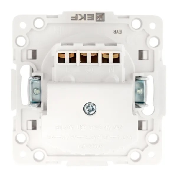 Электрическая розетка с заземлением, шторками и USB-A разъемами, винтовое подключение для скрытой установки с накладкой белого цвета, ЕКФ Стокгольм EYR16-2USB-typeA