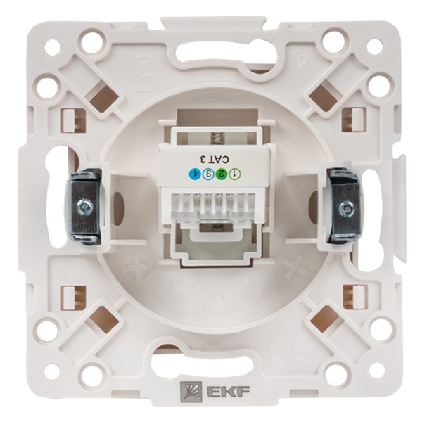 Механизм телефонной розетки для скрытой установки в сухих помещениях с накладкой белого цвета, ЕКФ серии Стокгольм. EYT01-034-10