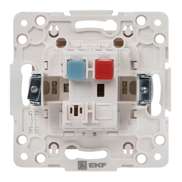 Механизм одноклавишного проходного выключателя с винтовым подключением для скрытой установки в сухих помещениях с клавишами белого цвета, ЕКФ серии Стокгольм. EYV10-025-20