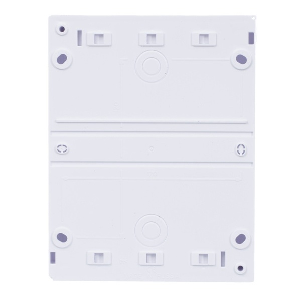 На задней части щитка присутствует установленная симметричная рейка для монтажа и крепление для кабельной стяжки.