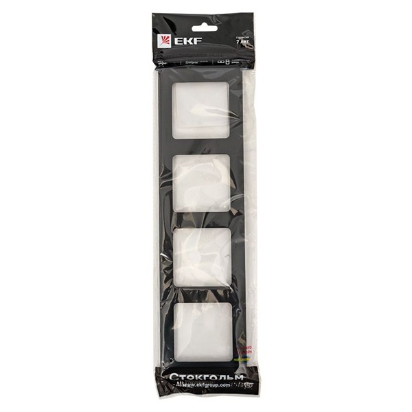 Четырехпостовое обрамление из металла прямоугольной формы, для электроустановочных механизмов ЕКФ, коллекция Стокгольм, черного цвета EZM-G-305-10