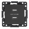 Механизм USB зарядки с разъемом type A/type C для скрытой установки в сухих помещениях с накладкой черного цвета, ЕКФ серии Стокгольм. EZR-2USB-type-C