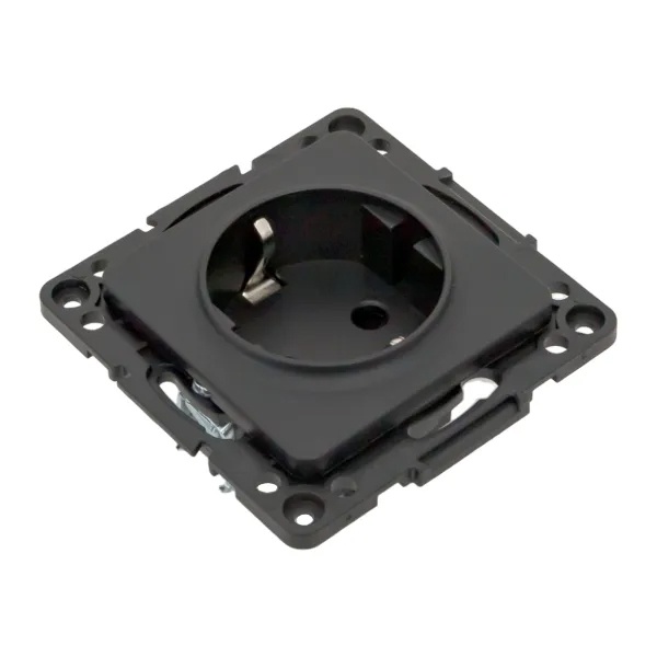 Механизм электрической розетки немецкого стандарта с защитой контактов и винтовым подключением для скрытой установки в сухих помещениях с накладкой черного цвета, ЕКФ серии Стокгольм. EZR16-028-20