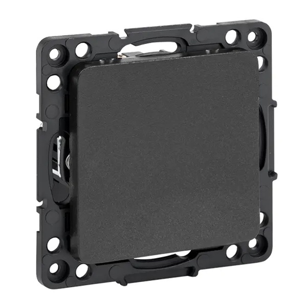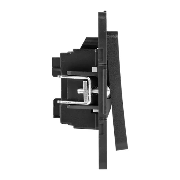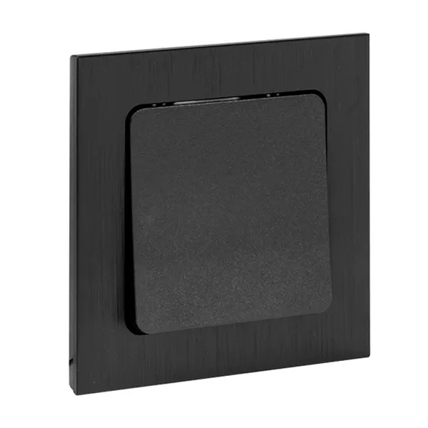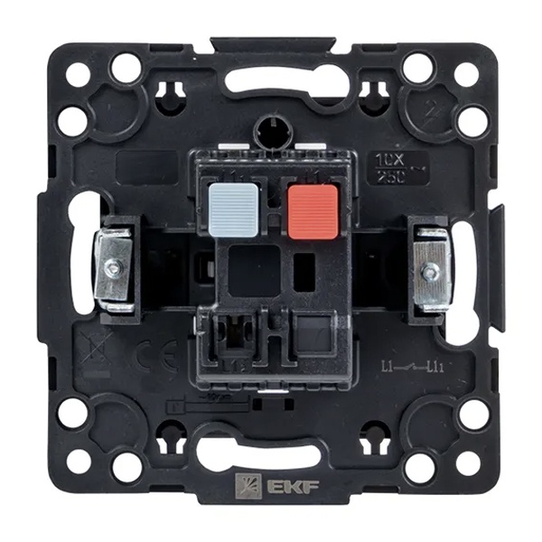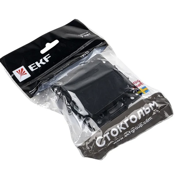 Механизм одноклавишного выключателя с пружинным подключением для скрытой установки в сухих помещениях с клавишей черного цвета, ЕКФ серии Стокгольм. EZV10-021-10