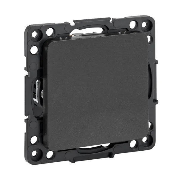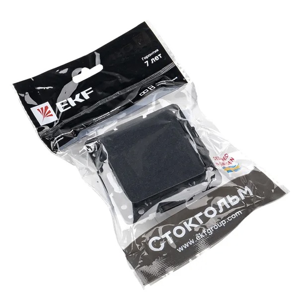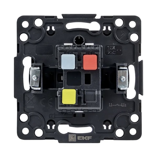 Механизм одноклавишного проходного выключателя с пружинным подключением для скрытой установки в сухих помещениях с клавишами черного цвета, ЕКФ серии Стокгольм. EZV10-025-10