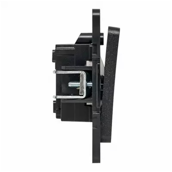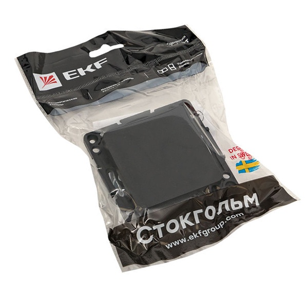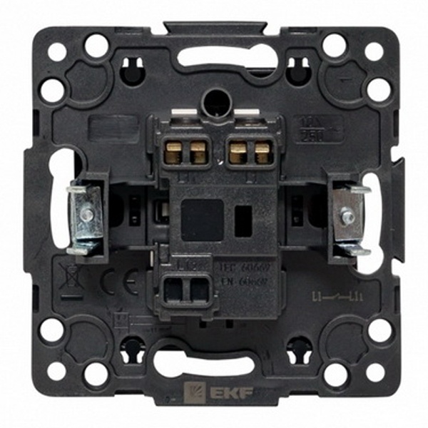 Механизм одноклавишного проходного выключателя с винтовым подключением для скрытой установки в сухих помещениях с клавишами черного цвета, ЕКФ серии Стокгольм. EZV10-025-20