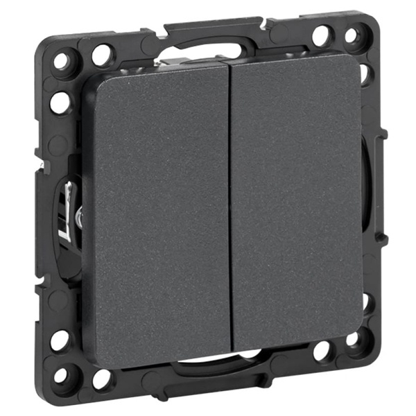 Механизм двухклавишного проходного выключателя с винтовым подключением для скрытой установки в сухих помещениях с клавишами черного цвета, ЕКФ серии Стокгольм. EZV10-027-20