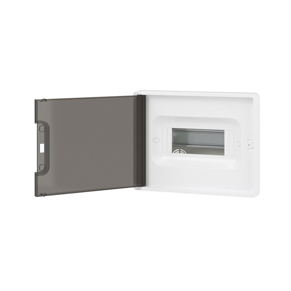Пластиковый распределительный шкаф DKC Frame скрытой установки в пустотелых стенах, один ряд 8 модулей, тонированая дверь F08B3WD