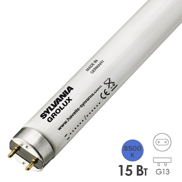 Лампа люминесцентная T8 Sylvania GROLUX мощностью 15 Ватт с цоколем G13 для комнатных цветов и растений. 0000069