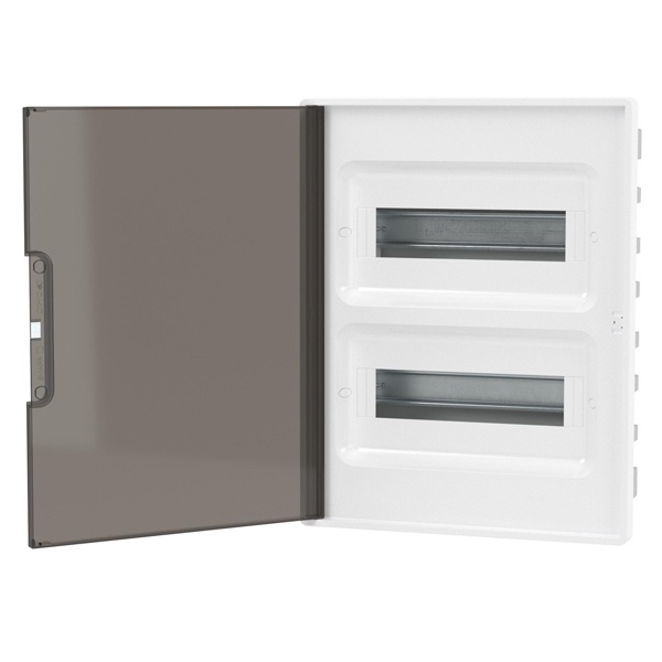 Щиток встраиваемый для полых стен DKC FRAME 24 модуля с тонированной дверцей с шиной IP40 белый F24B3WD