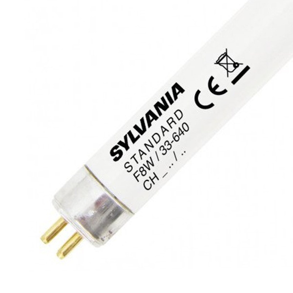 Двухцокольная лампа-трубка люминесцентная ЛЛ Т5 мощностью 8 Вт с цоколем G5 белого (дневного) света для ЭПРА 0000021