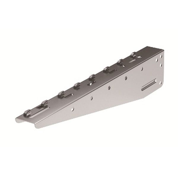 На поверхности представленной детали расположено восемь зажимов, с помощью которых прочно фиксирует проволочный лоток с уложенными кабелями. Конструкция консоли разработана для крепления в профиль. К выбранной поверхности изделие закрепляют под углом 90 градусов. Благодаря надёжной системе фиксации на строительной поверхности данная консоль обеспечивает уровень несущей способности равный 1862 кН. Изделие применяют для прокладки кабелей в различных зданиях и сооружениях: на производстве, в офисах и жилых домах. Крепеж имеет сертификат соответствия, который подтверждает её высокое качество и надёжность.