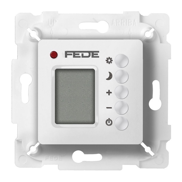 Универсальный электронный регулятор комнатной температуры с датчиком теплого пола, скрытой установки, Феде, цвет белый. FD18004