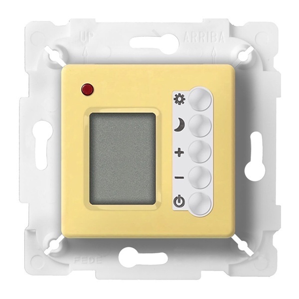 Универсальный электронный регулятор комнатной температуры с датчиком теплого пола, скрытой установки, Феде, накладка золото кнопки белые. FD18004OB