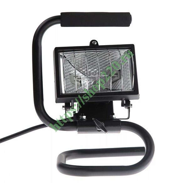 Прожектор галогенный переносной подключается сетевым шнуром в бытовую розетку с напряжением 220V. Степень защиты корпуса IP54 допускает использование прожекторной стойки в уличных условиях.