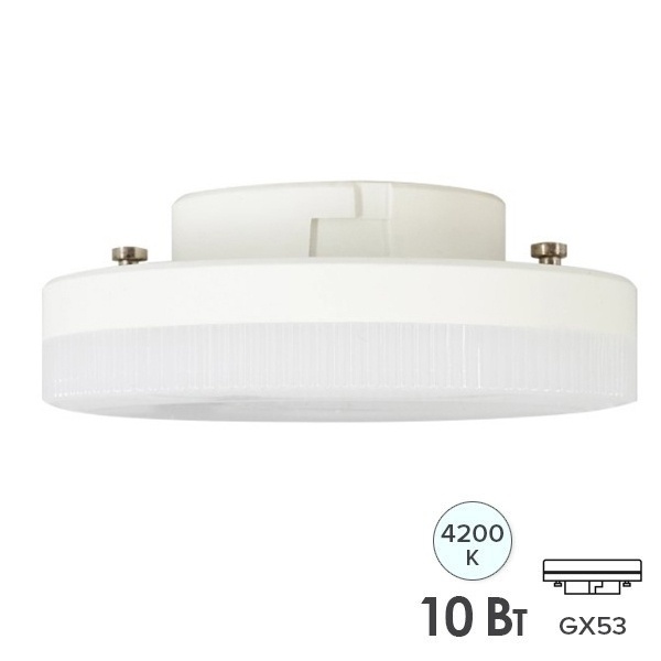 LED лампочка таблетка мощностью 10 Вт с цоколем GX53 белый свет для натяжных потолков 608352