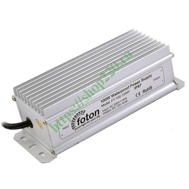 Блок питания Foton Lighting для светодиодных лент мощностью 100 Ватт на 12 Вольт размерами 240x70x51 мм и степенью защиты IP67 FLS-IP67-100-12