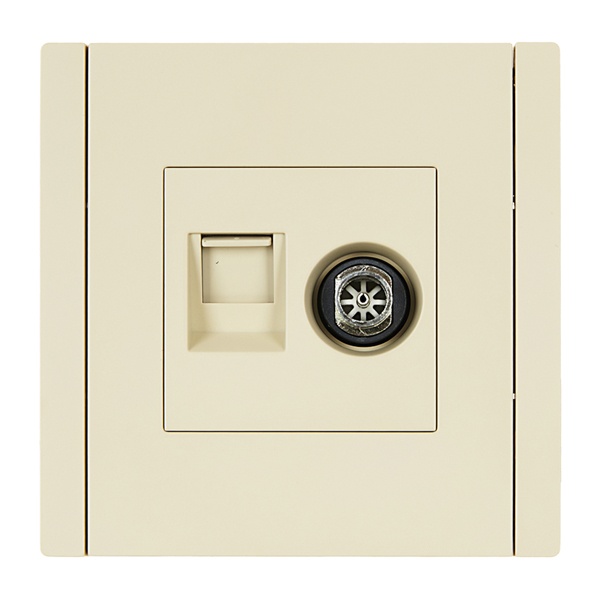Механизм комбинированной розетки скрытого монтажа с разъемом RJ45 категории 5e и TV бежевого цвета FP-AK20-1-K10