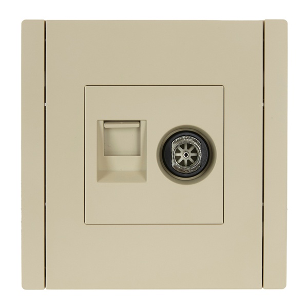 Механизм комбинированной розетки скрытого монтажа с разъемом RJ45 категории 6 и TV бежевого цвета FP-AK20-2-K10