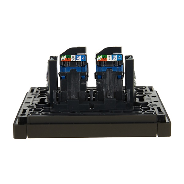 Механизм информационной розетки скрытого монтажа с двумя разъемами RJ45 категории 5e серого цвета FP-K20-1-K03