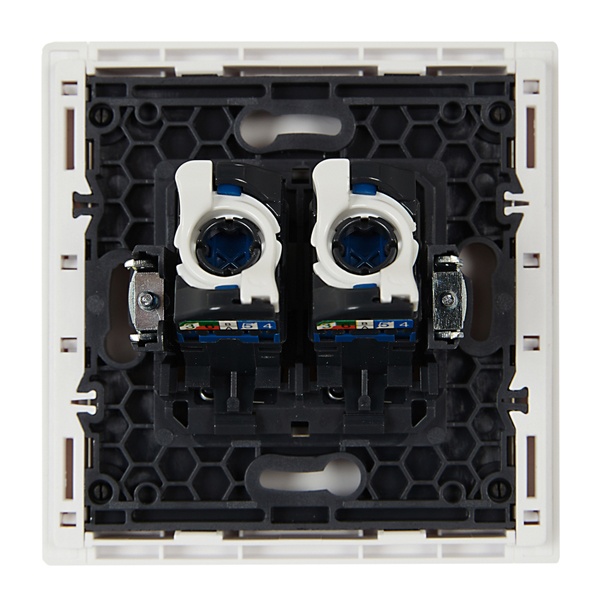 Механизм информационной розетки скрытого монтажа с двумя разъемами RJ45 категории 6 белого цвета FP-K20-2-K01