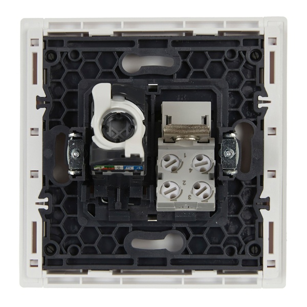Механизм информационной розетки скрытого монтажа с разъемами RJ45 и RJ11 белого цвета FP-KT20-O-1-K01