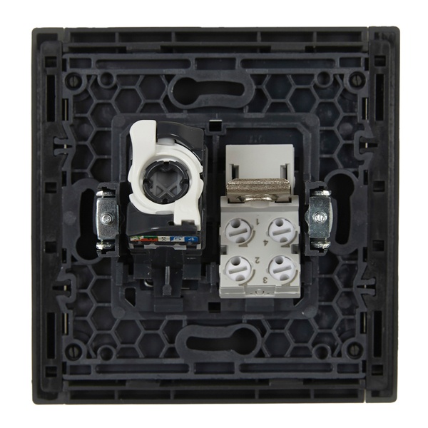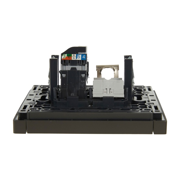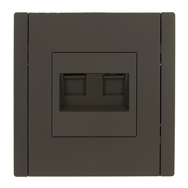 Механизм информационной розетки скрытого монтажа с разъемами RJ45 и RJ11 серого цвета FP-KT20-O-1-K03