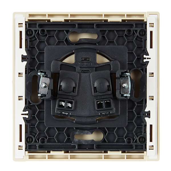 Механизм одноместной розетки с защитными шторками скрытого монтажа бежевого цвета FP-R13-10-K10