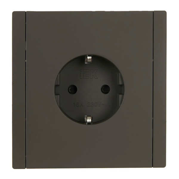 Механизм одноместной розетки скрытого монтажа с заземляющими контактами и защитными шторками серого цвета FP-R14-16-1-K03