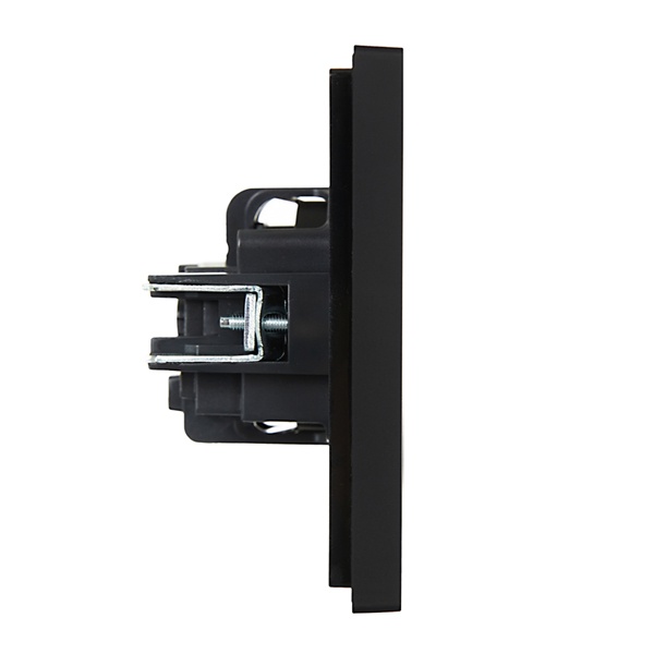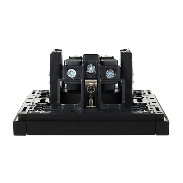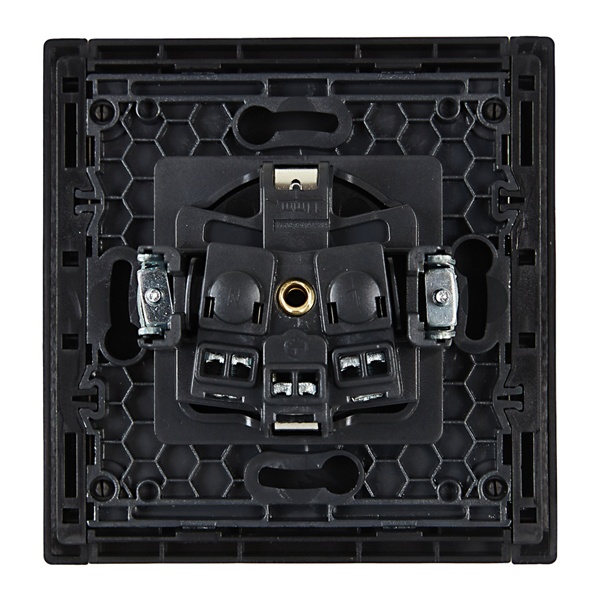 Механизм одноместной розетки скрытого монтажа с заземляющими контактами и шторками черного цвета FP-R14-16-K02