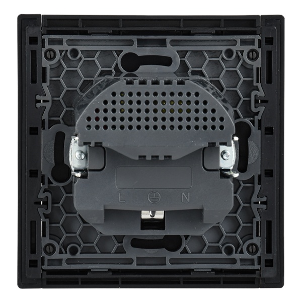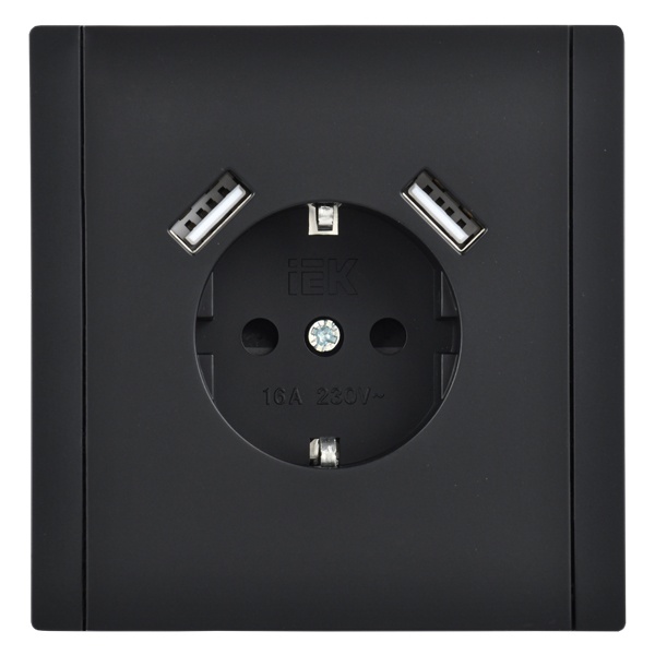 Одноместная электрическая розетка с заземлением и разъемами USB тип-A скрытого монтажа черного цвета FP-R14-16-U21-D31-K02