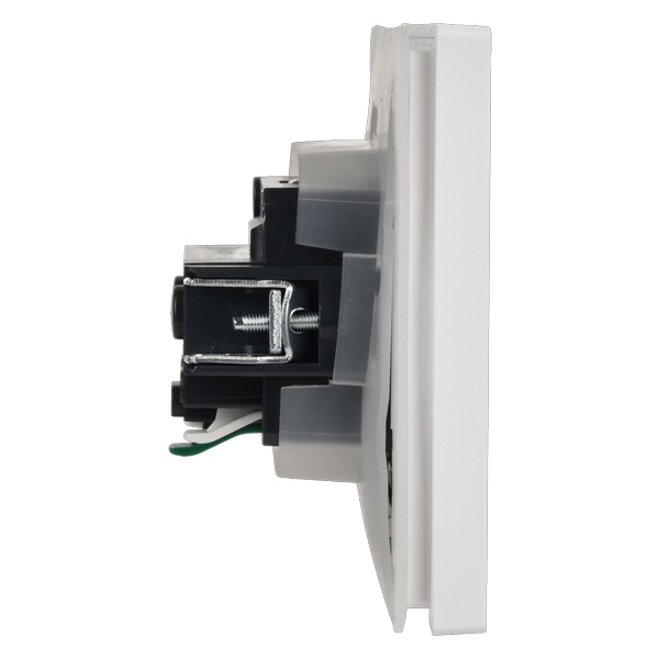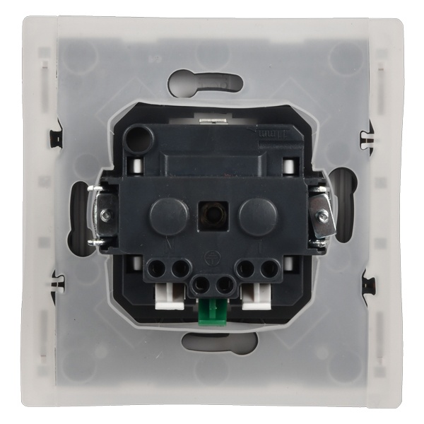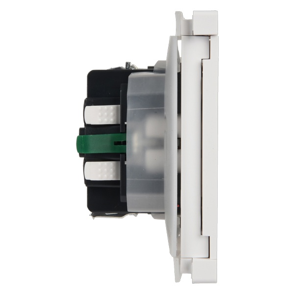 Механизм одноместной розетки скрытого монтажа с заземляющими контактами и защитными шторками с крышкой слайдером белого цвета FP-R16-16-1-44-K01
