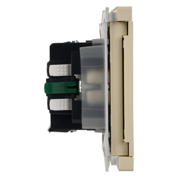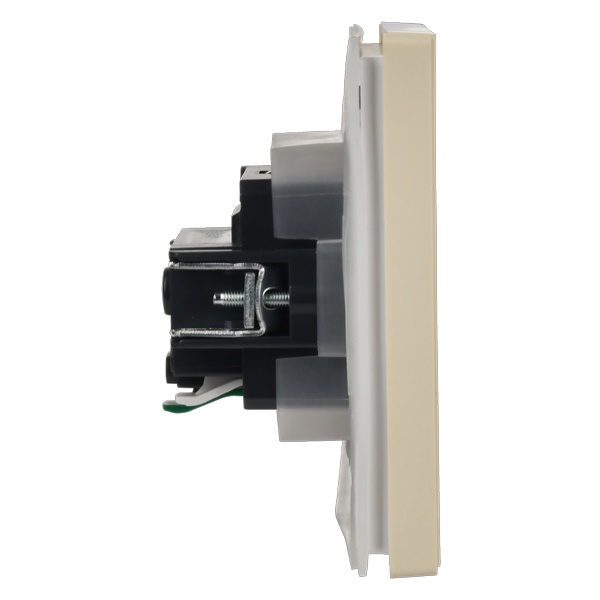 Механизм одноместной розетки скрытого монтажа с заземляющими контактами и защитными шторками с крышкой слайдером цвета ваниль FP-R16-16-1-44-K10