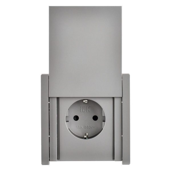Механизм одноместной розетки скрытого монтажа с заземляющими контактами и защитными шторками с крышкой слайдером цвета сталь FP-R16-16-1-44-K46