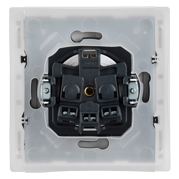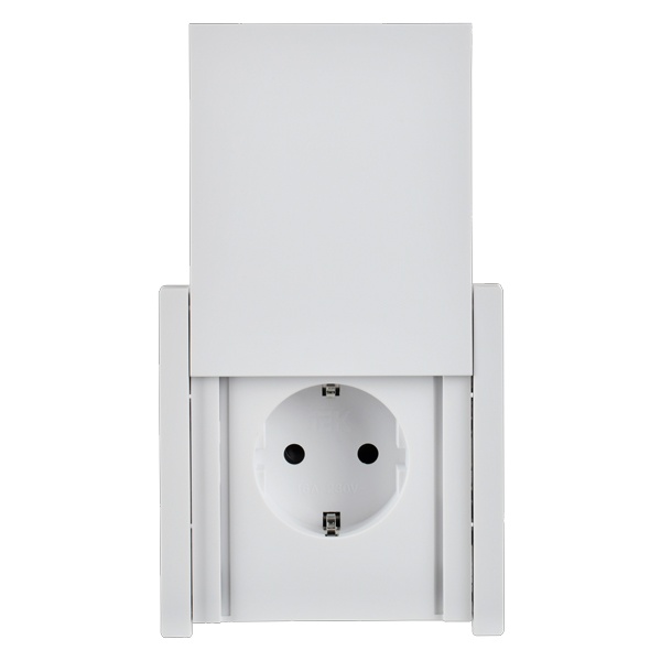 Механизм одноместной розетки скрытого монтажа с заземляющими контактами и защитными шторками с крышкой слайдером белого цвета FP-R16-16-44-K01