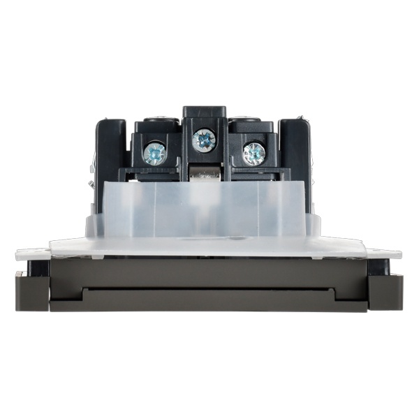 Механизм одноместной розетки скрытого монтажа с заземляющими контактами и защитными шторками с крышкой слайдером серого цвета FP-R16-16-44-K03