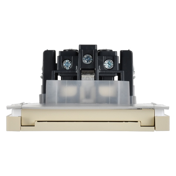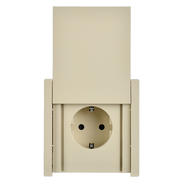 Механизм одноместной розетки скрытого монтажа с заземляющими контактами и защитными шторками с крышкой слайдером цвета ваниль FP-R16-16-44-K10