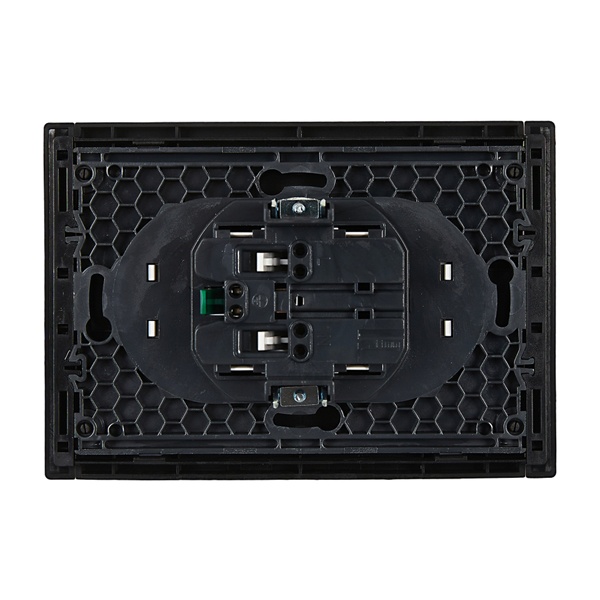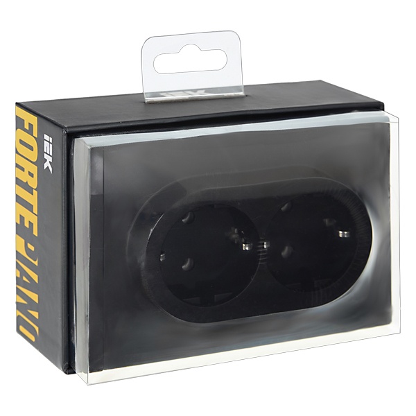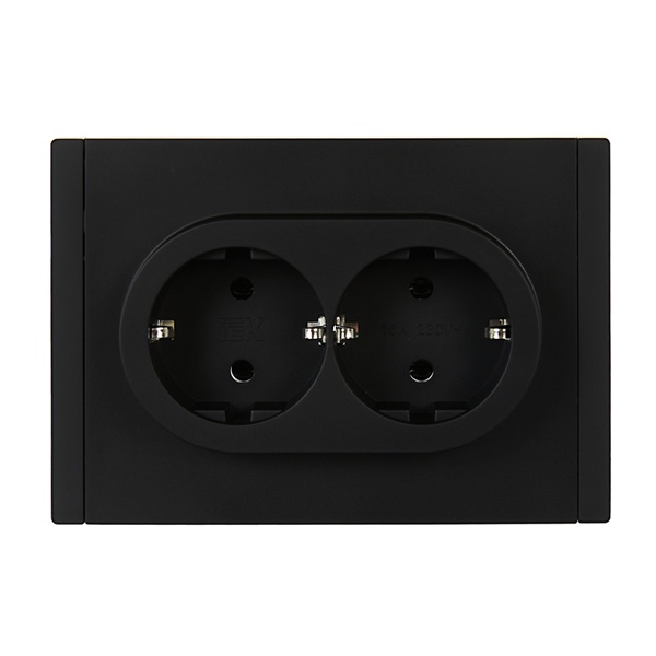 Механизм двойной розетки скрытого монтажа с заземляющими контактами черного цвета FP-R21-16-1-K02